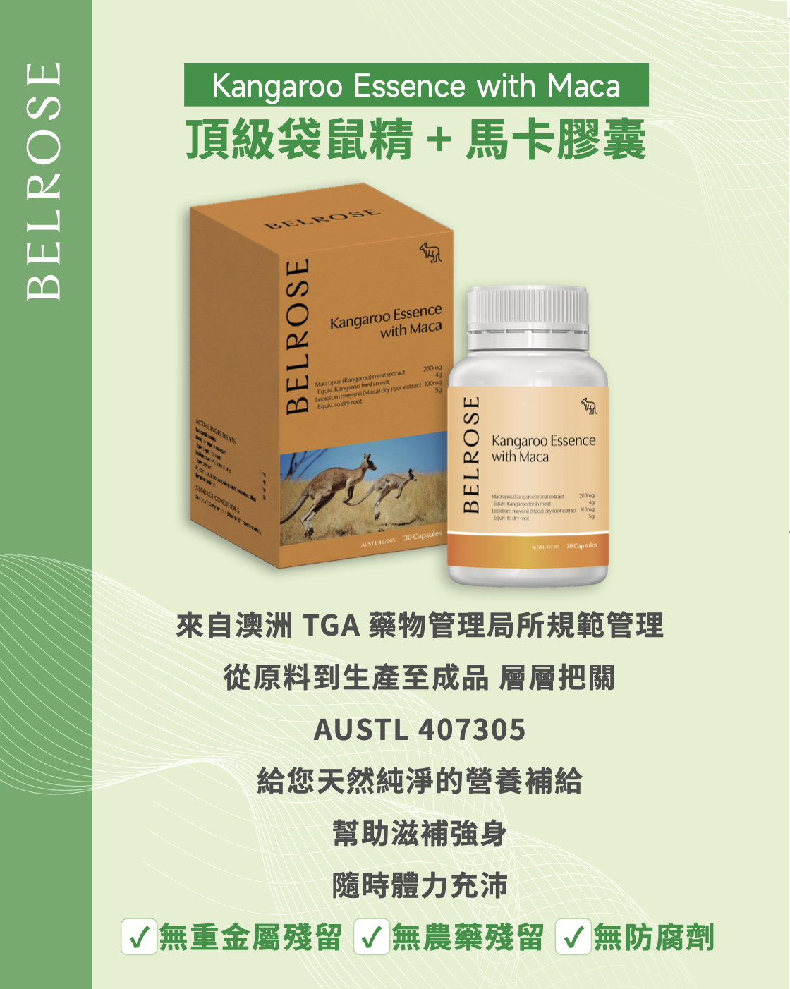 【Belrose】頂級袋鼠精+馬卡膠囊1瓶(30顆/瓶)(效期2026/05/31)