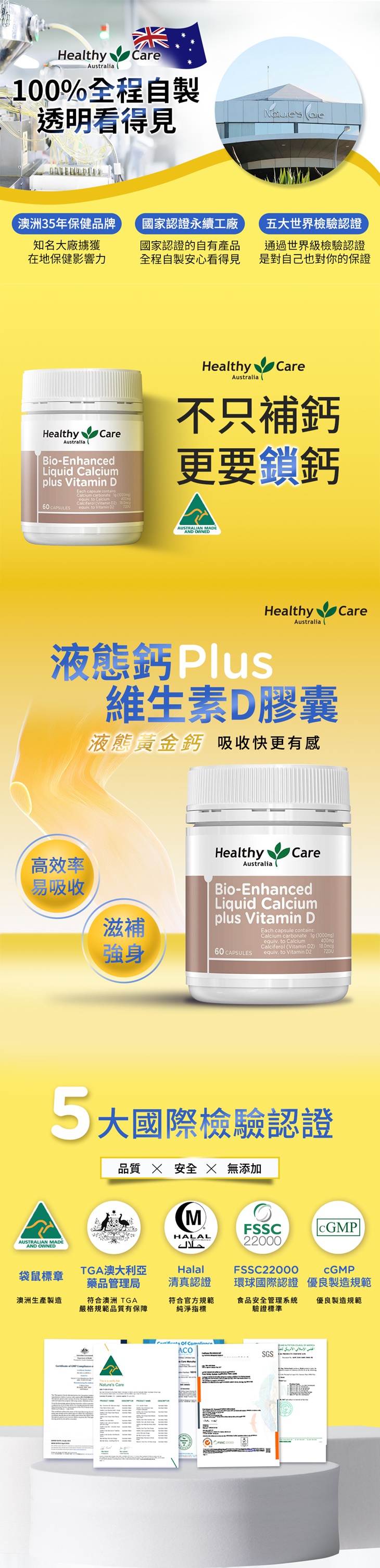 【Healthy Care】水溶性鈣加維他命D膠囊 1/2瓶(60顆/瓶)(效期至2027/1/31)